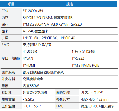 RS-D1204是一款19寸上架国产处理器车载加固计算机,整机采 用新飞腾服务器版处理器FT2000+。该产品选用国产化设计,元器件国产化率按数量以及按型号上都在90%以上,整机内部主板接口采用wafer接口输出,方便航插头接线。使得机内走线简洁,信号连接可靠。 产品在散热和EMC方面全面优化设计,机箱采用不锈钢板成形,电子部件全面三防处理.环境性能符合车载初级加固型,EMC性 能符合《系统电磁兼容性要求》中系统安全裕度。该产品适 用于车载工作环境;用作视频数据采集与处理环境应用。